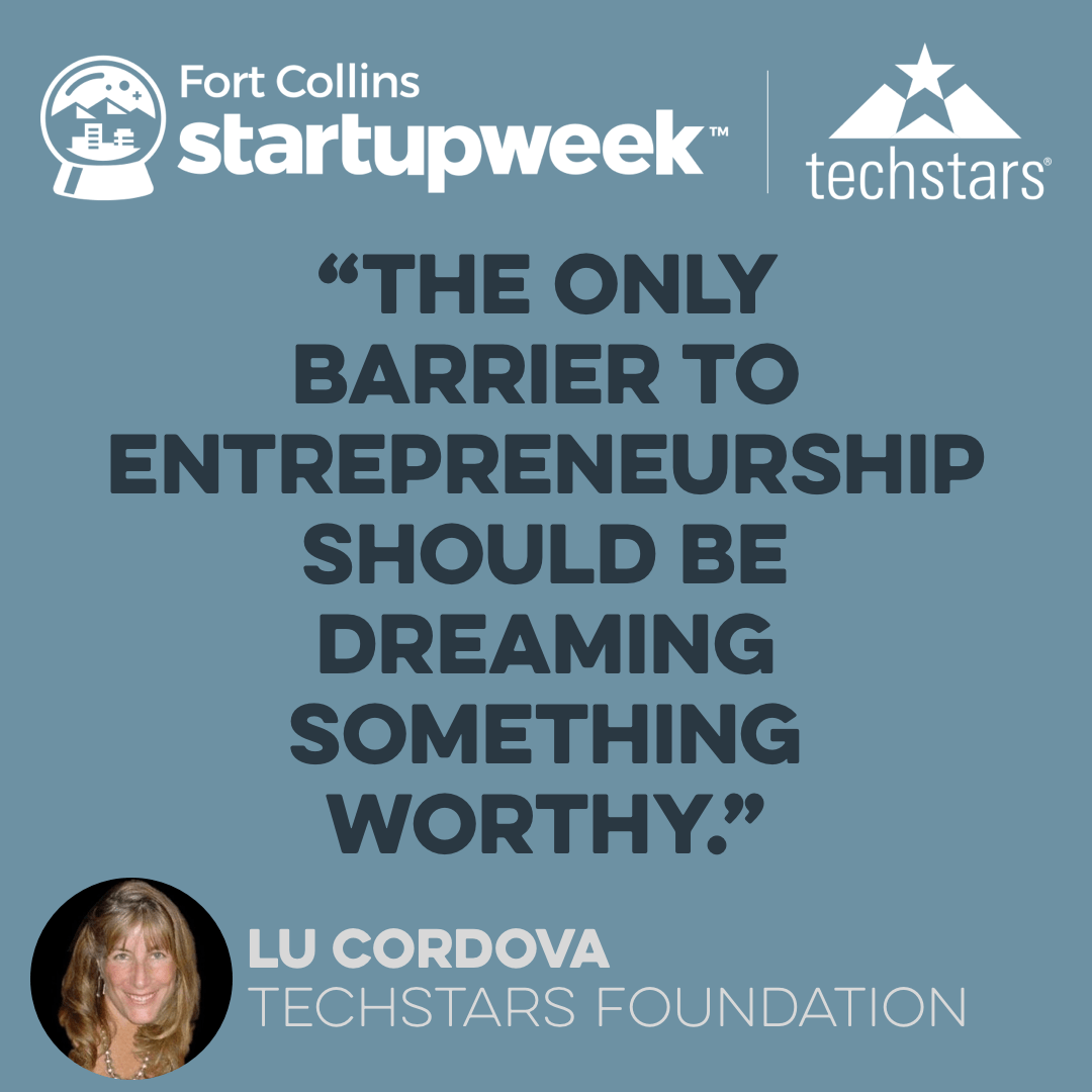 Today, we have an interview with Lu Cordova, the head of Techstars Foundation. Lu will be keynoting the 2018 Techstars Startup Week Fort Collins Wednesday, Feb 28th at 9am at the Basecamp @ The Carnegie Center for Creativity. She will be talking about what it’s like leading a global nonprofit fostering diversity in entrepreneurship. In the midst of a packed travel schedule, going to over 60 countries, Lu takes a moment to share with us her views on Fort Collins, Startup Week and the Techstars culture.